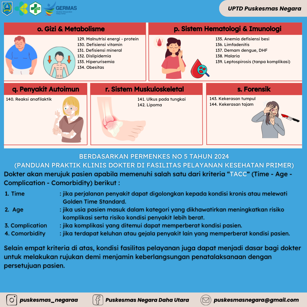Berdasarkan Permenkes No 5 tahun 2024 (Panduan Praktik Klinis Dokter di Fasilitas Pelayanan Kesehatan Primer)