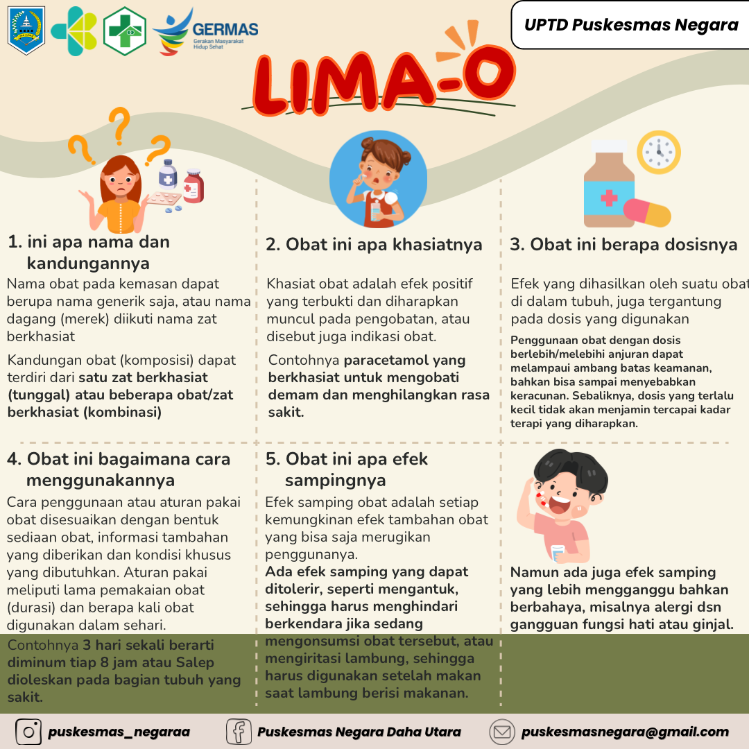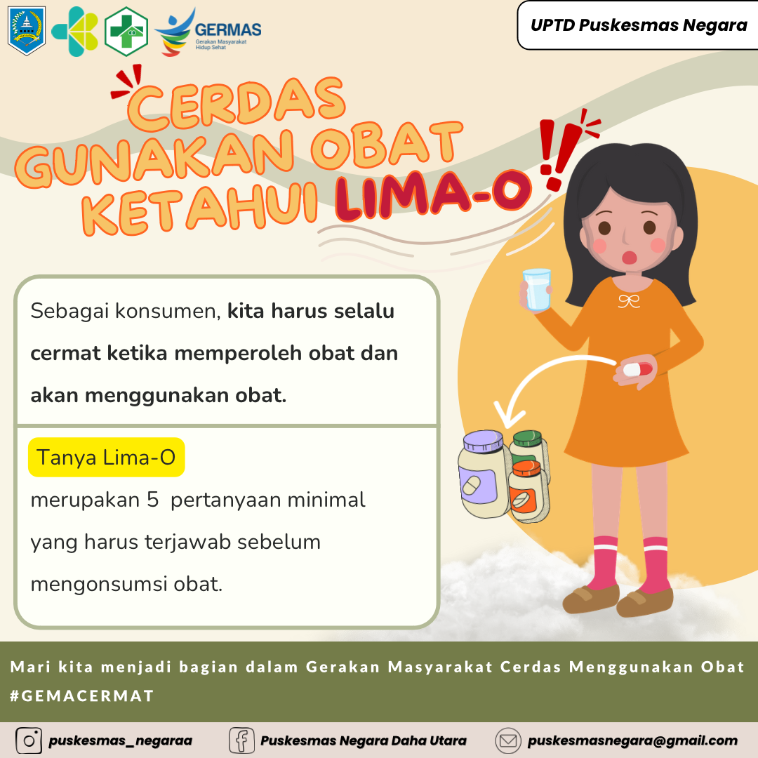 Tanya Lima-O merupakan pertanyaan minimal yang harus terjawab sebelum mengonsumsi obat. Dengan menanyakan Lima-O kita berperan penting dalam penggunaan obat secara tepat dan sesuai dengan kebutuhan.