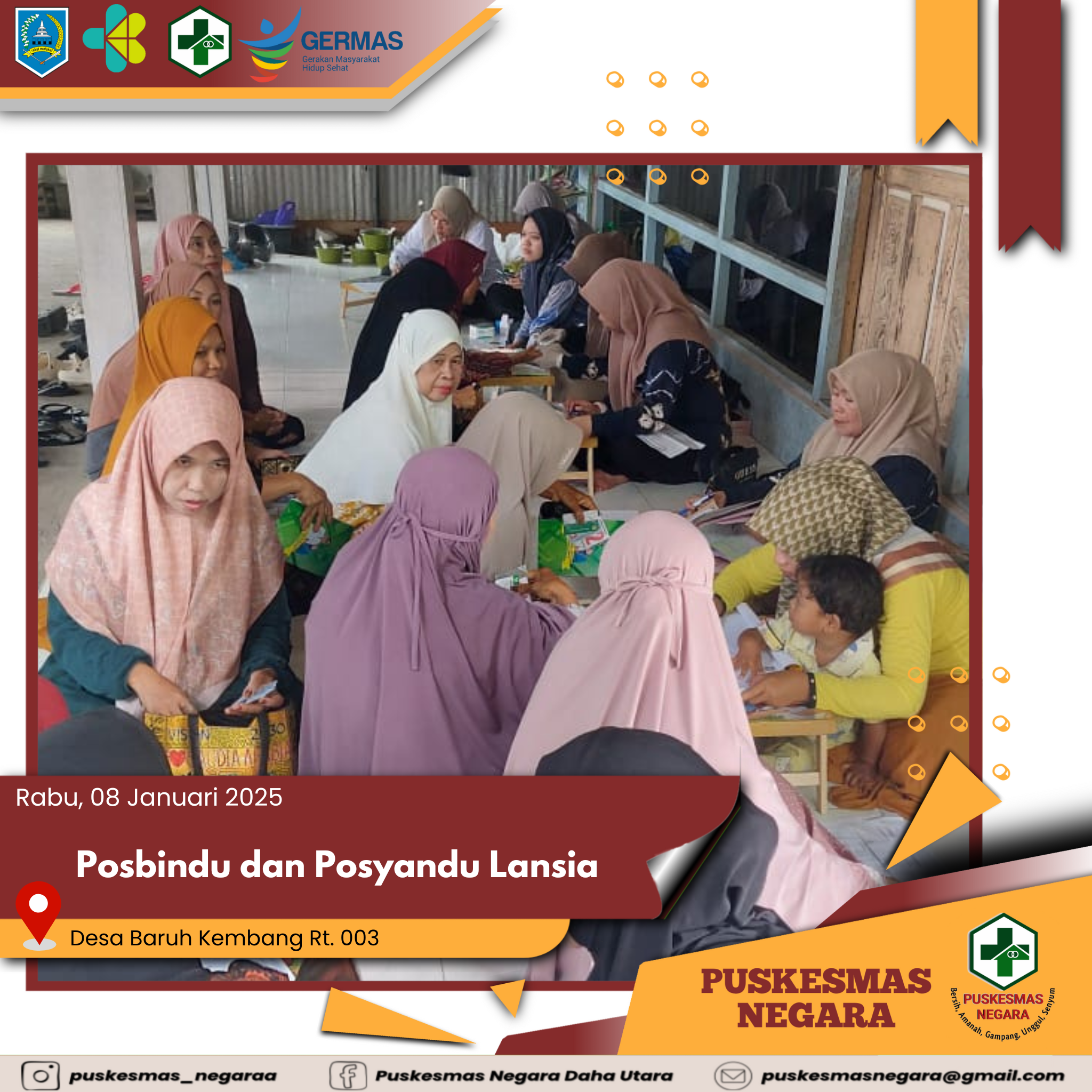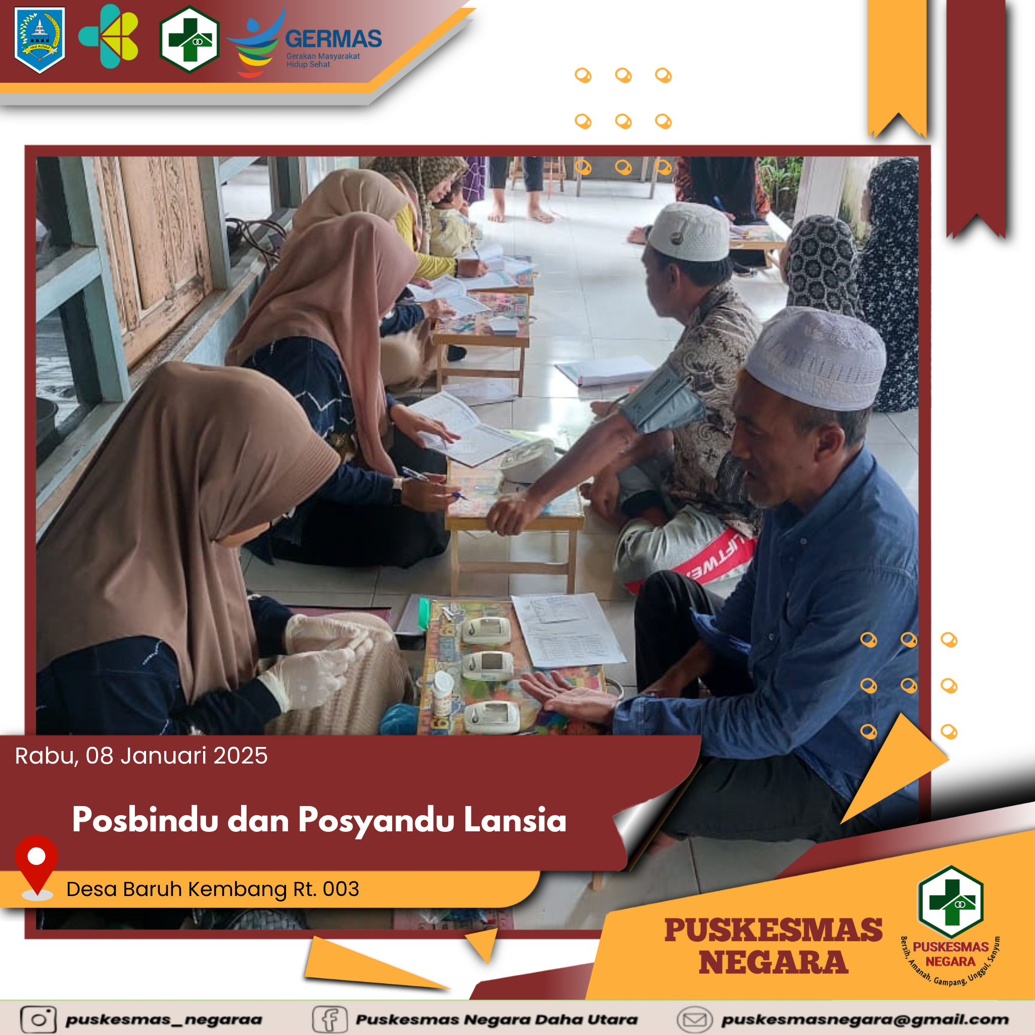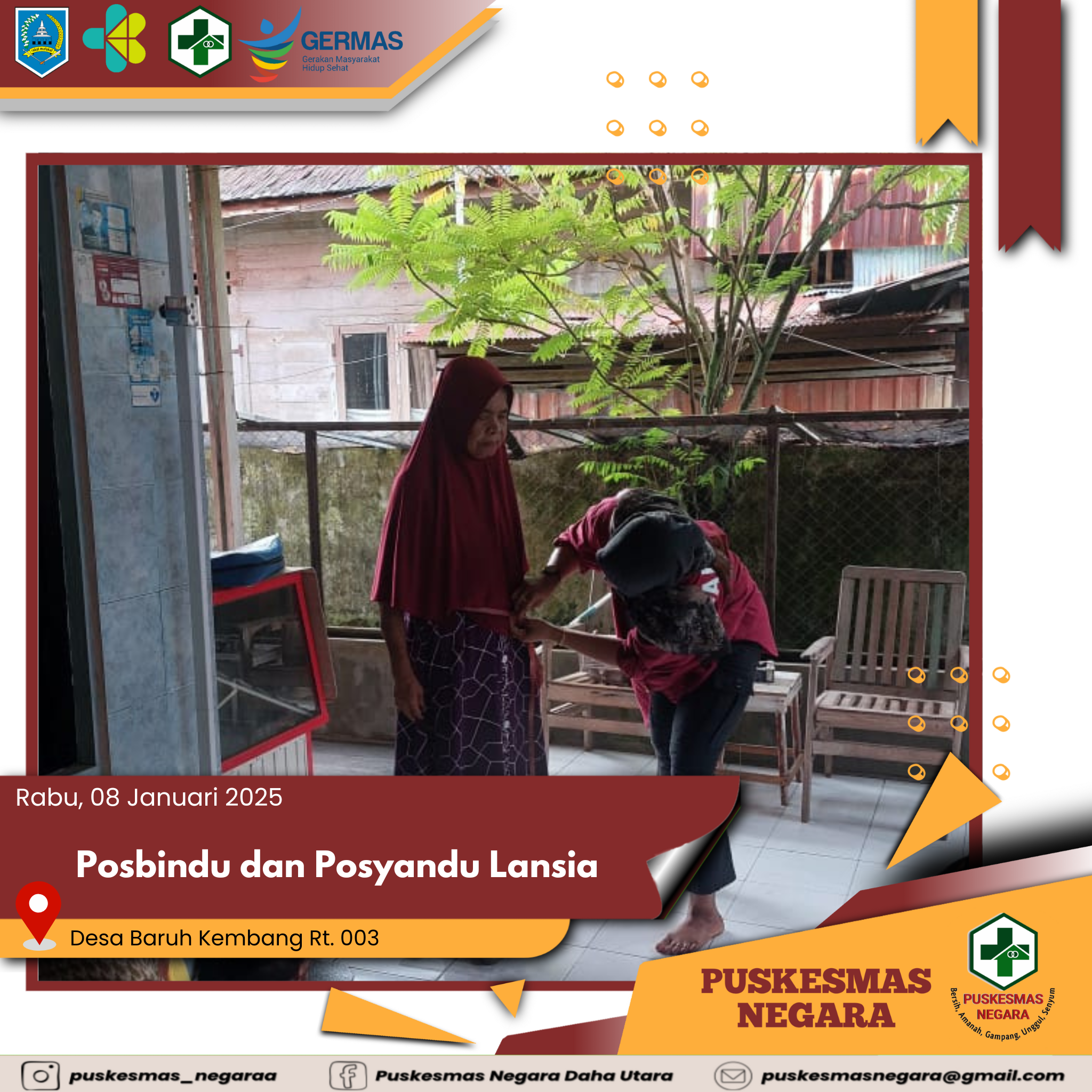 Kegiatan Posbindu dan Posyandu Lansia di Desa Baruh Kembang Rt. 003 Wilayah Kerja UPTD Puskesmas Negara Kec. Daha Utara Kab. Hulu Sungai Selatan.