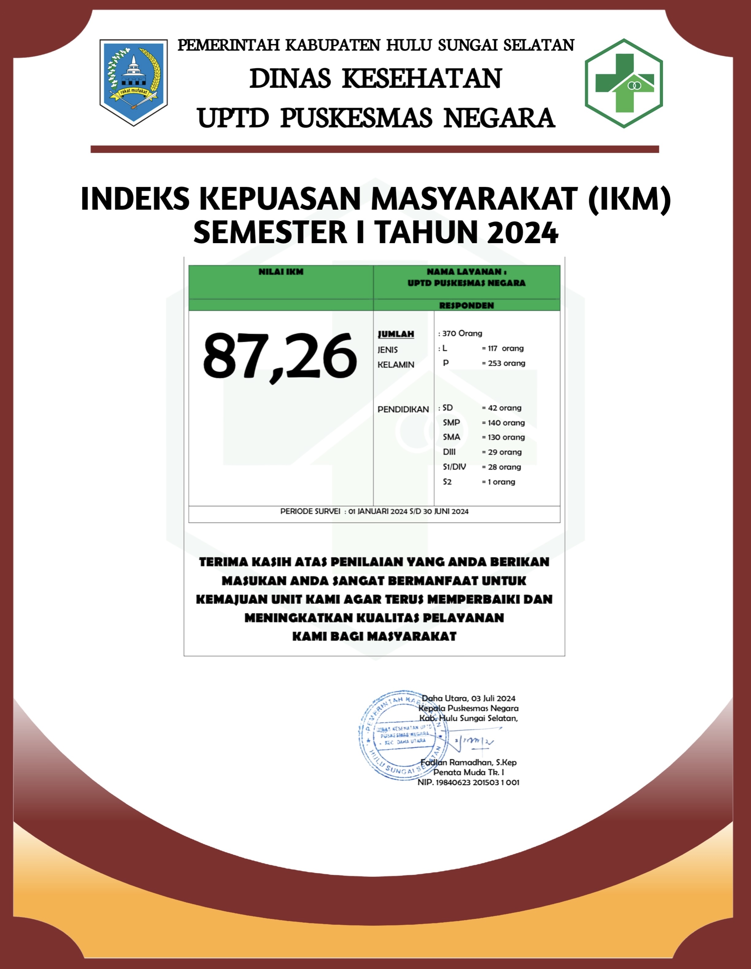 Untuk Meningkatkan Kualitas Mutu dan Kinerja Puskesmas Negara, Kriktik dan Saran serta Umpan Balik Masyarakat terhadap Pelayanan Puskesmas Negara dapat disampaikan melalui :